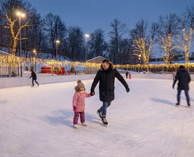 Не забыли мы и про коньки: для вашего комфорта будет работать прокат. Осталось только захватить с собой хорошее настроение!